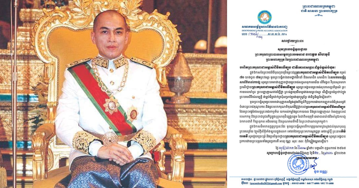 សារលិខិតថ្វាយព្រះពររបស់សមាគមសម្ព័ន្ធសារព័ត៌មានឯករាជ្យ បានទូលថ្វាយយ៉ាងដូច្នេះថា ៖ ទូលព្រះបង្គំតាងនាមថ្នាក់ដឹកនាំ និងសមាជិក សមាជិកាសមាគមសម្ព័ន្ធសារព័ត៌មានឯករាជ្យ សូមព្រះបរមរាជានុញ្ញាតថ្វាយព្រះរាជសព្ទសាធុការពរជ័យ សិរីមង្គល វិបុលសុខមហាប្រសើរថ្វាយព្រះករុណាជាអម្ចាស់ជីវិតលើត្បូង សូមព្រះអង្គមានព្រះរាជសុខភាពល្អបរិបូរណ៍ ព្រះកាយពលមាំមួន ព្រះបញ្ញាញាណវាងវៃភ្លឺថ្លា ព្រះជន្មាយុយឺនយូរជាងរយព្រះវស្សា ដើម្បីបន្តគង់ប្រថាប់ក្នុងព្រះបរមសិរីរាជសម្បត្តិ ជាម្លប់ដ៏ត្រជាក់ត្រជុំសម្រាប់ប្រជានុរាស្ត្រខ្មែរ ជានិច្ចនិរន្តរ៍តរៀងទៅ។