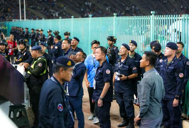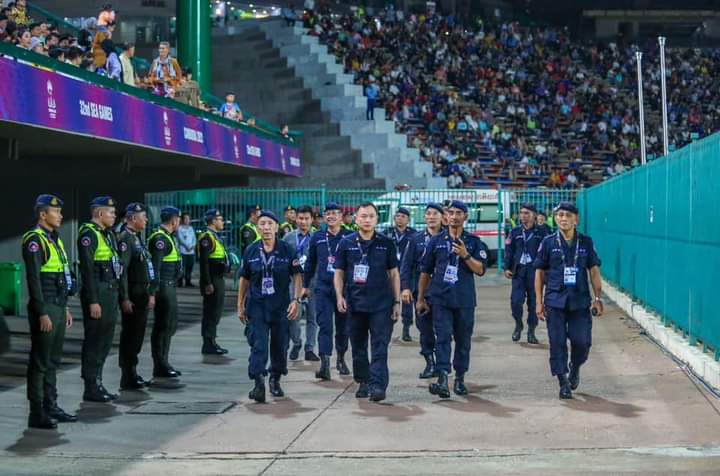 កម្លាំងអាវុធហត្ថរាជធានីភ្នំពេញ ចូលរួមការពារ សន្តិសុខ រក្សាសណ្តាប់ធ្នាប់ ក្នុងការប្រកួតបាល់ទាត់បុរស អាយុក្រោម ២២ឆ្នាំ វគ្គផ្តាច់ព្រ័ត្រ ដណ្តើមយកមេដាយមាស រវាងក្រុមជំរើសជាតិ ឥណ្ឌូណេស៊ី និង ថៃ នាយប់ ថ្ងៃទី១៦ ខែឧសភា ឆ្នាំ២០២៣។ ជាលទ្ធផលក្រុមជម្រើសជាតិ ឥណ្ឌូណេស៊ី យកឈ្នះ ក្រុមជម្រើសជាតិ ថៃ ក្នុងលទ្ធផល ៥ ទល់នឹង ២ ចេញផ្សាយថ្ងៃពុធ ទី១៧ ខែឧសភា ឆ្នាំ២០២៣ ការិយាល័យនិពន្ធ 017778289=0882476167