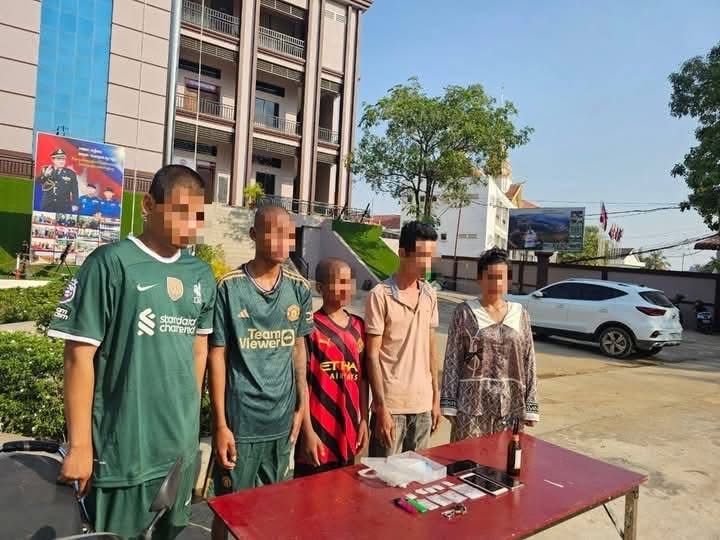 ខេត្តបន្ទាយមានជ័យ៖ កម្លាំងមូលដ្ឋានកងរាជអាវុធហត្ថក្រុងសិរីសោភ័ណ ដឹកនាំដោយលោកវរសេនីយ៍ត្រី សុខ ឡេង មេបញ្ជាការមូលដ្ឋានកងរាជអាវុធហត្ថក្រុង បានធ្វើប្រតិបត្តិការបង្រ្កាបករណីជួញដូរ និងប្រើប្រាស់ដោយខុសច្បាប់នូវសារធាតុ ញៀន នៅវេលាម៉ោង១៣ និង៥០នាទី កាលពីថ្ងៃទី០៤ ខែកុម្ភៈ ឆ្នាំ២០២៥ ក្រោយពីទទួលបានព័ត៌មានពីប្រជាពលរដ្ឋ ករណីឃាត់ខ្លួនជនសង្ស័យជាបន្តបន្ទាប់ចំនួន០៥នាក់ ១–ឈ្មោះ ដួង សុខា ភេទប្រុស អាយុ២៩ឆ្នាំ ជនជាតិខ្មែរ មុខរបរគ្មានទីកន្លែងបច្ចុប្បន្នស្នាក់នៅភូមិតារាងបាល់ សង្កាត់កំពង់ស្វាយ ក្រុងសិរីសោភ័ណ(ជួញដូរ និងប្រើប្រាស់) ២–ឈ្មោះ ហាង សារ៉ូន ហៅ មុំ ភេទស្រីអាយុ៣៨ឆ្នាំ ជនជាតិខ្មែរ មុខរបរកម្មករ បច្ចុប្បន្នស្នាក់នៅភូមិសែសិន សង្កាត់អូរអំបិល ក្រុងសិរីសោភ័ណ(ជួញដូរ និងប្រើប្រាស់) ៣–ឈ្មោះ ផន បូណាន ហៅ បញ្ញា ភេទប្រុស អាយុ១៦ឆ្នាំ ឆ្នាំ បច្ចុប្បន្នស្នាក់នៅវត្តបរមសាលព្រឹក្ស (វត្តភ្នំស្វាយ) ស្ថិតក្នុងភូមិគោរដ្ឋាន សង្កាត់អូរអំបិល ក្រុងសិរីសោភ័ណ(ប្រើប្រាស់) ៤–ឈ្មោះ គង់ បញ្ញា ភេទប្រុស អាយុ១៤ឆ្នាំ ជនជាតិខ្មែរ មុខរបរគ្មាន បច្ចុប្បន្នស្នាក់នៅវត្តបរមសាលព្រឹក្ស (វត្តភ្នំស្វាយ)(ប្រើប្រាស់)៥–ឈ្មោះ ស៊ិម បារាំង ភេទប្រុស អាយុ២០ឆ្នាំ ជនជាតិខ្មែរ មុខរបរគ្មានបច្ចុប្បន្នស្នាក់នៅវត្តបរមសាលព្រឹក្ស (វត្តភ្នំស្វាយ) (ប្រើប្រាស់)។