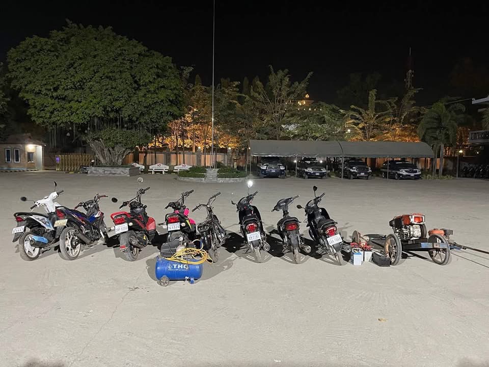 ម៉ាស៊ីនបូមខ្យល់ ០១គ្រឿង.អាំងវិចទ័របញ្ចូលអាគុយ ០១គ្រឿង.ឧបករណ៍ផ្សាដែក ០១គ្រឿង.ម៉ូតូ ០៨គ្រឿង និងឧបករណ៍ប្រើប្រាស់គ្រឿងញៀនមួយចំនួនផងដែរ។