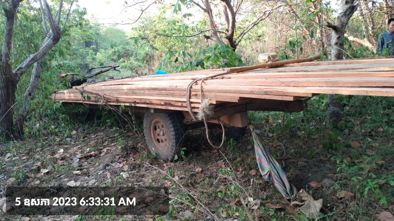 ខេត្តសៀមរាប ÷ នៅថ្ងៃទី 5 ខែឧសភាឆ្នាំ 2023 វីលាម៉ោង 6: 33នាទី លោក ភូគ វីរៈនាយសង្កាត់រដ្ឋបាលព្រៃឈើខ្វាវបានទទួលប្រភពពីអ្នកសារព័ត៌មានយើងរាយការណ៍ជូនលោកថាមានករណីគោយន្តដឹកអនុផលព្រៃឈើមួយគ្រឿងកំពុងតែសង្ងំលាក់ខ្លួននៅក្នុងចំការស្វាយចន្ទីមួយកន្លែងនៅចំណុចអូរបាក់ចិញ្ចៀន ភូមិស្រឡៅស្រោង ឃុំពង្រលើស្រុកជាក្រែង ខេត្តសៀមរាប ក្រោយពីលោកទទួលបានព័ត៌មានភ្លាមលោកក៏បានបញ្ជាកម្លាំងមន្ត្រីក្រោមឱវាទសហការជាមួយអ្នកសារព័ត៌មានចុះទៅដល់ទីតាំងដែលឈ្មួញឈើយកទៅលាក់ទុករីឯម្ចាស់គោយន្តហាក់បីដូចគេដឹងខ្លួនមុនហើយក៏ដាក់មេព្រុចបាត់ស្រមោលតែម្ដង នៅពេលនោះជំនាញរដ្ឋបាលព្រៃឈើបានយកវត្ថុតាងឈើចំបក់មានចំនួន៦៣សន្លឹក=ស្មើរ២,៥៦៨ម៉ែត្រត្រីគុណព្រមទាំងគោយន្តដឹកបទល្មើសឈើយកទៅរក្សាទុកនៅទីស្នាក់ការរដ្ឋបាលព្រៃឈើឃុំខ្វាវដើម្បីបន្តតាមនីតិវិធីច្បាប់៕