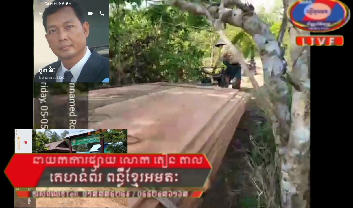 លោក ភូគ វីរះ នាយសង្កាត់រដ្ឋបាលព្រៃឈើខ្វាវទទួលបានសេចក្តីរាយការណ៍ពីអ្នកសារព័ត៌មានភ្លាមបញ្ជាកម្លាំងមន្ត្រីក្រោមឱវាទចុះបង្រាបគោយន្តកន្ត្រៃដឹកឈើខុសច្បាប់ក្តារចំបក់ចំណុចអូរបាក់ចិញ្ចៀនយកមករក្សាទុកដើម្បីបន្តតាមនិតិវិធីច្បាប់ ចេញផ្សាយថ្ងៃសុក្រ ទី៥ ខែឧសភា ឆ្នាំ២០២៣ ការិយាល័យនិពន្ធ 017778289=0882476167