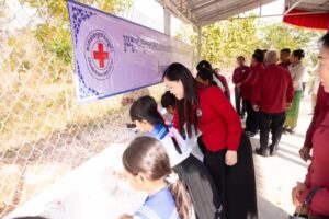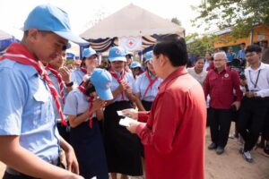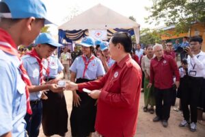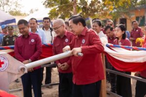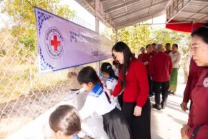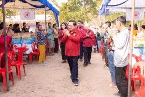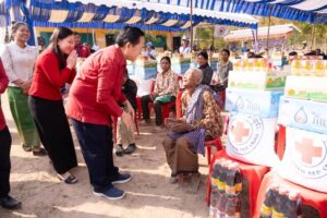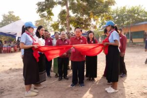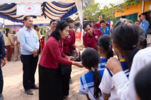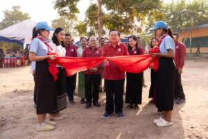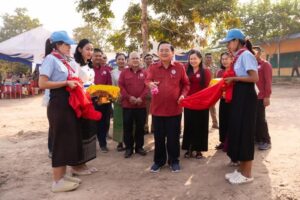 ខេត្តបាត់ដំបង ÷ នាព្រឹកថ្ងៃទី២១ ខែមករា ឆ្នាំ២០២៥ ឯកឧត្តម សុខ លូ អភិបាល នៃគណៈអភិបាលខេត្ត និងជាប្រធានគណៈកម្មាធិការសាខាកាកបាទក្រហមកម្ពុជាខេត្តបាត់ដំបង និងលោកជំទាវ ម៉េត រ៉ាវិចិត្រ សុខ លូ អនុប្រធានកិត្តិយសសាខាកាកបាទក្រហមកម្ពុជា ខេត្តបានអញ្ជើញជាអធិបតីភាព ប្រគល់នូវសមិទ្ធិផលថ្មី ជាអំណោយរបស់សាខាកាកបាទក្រហមកម្ពុជាខេត្តបាត់ដំបងរួមមាន សំណង់អនាម័យទឹកស្អាត អណ្តូងស្នប់១ កន្លែង ស្ថានីយ៍លាងដៃ ១ កន្លែង បង្គន់អនាម័យថ្មី ១ខ្នង ២បន្ទប់ ប្រគល់ជូន លោកគ្រូ អ្នកគ្រូ សិស្សានុសិស្ស ក្នុង សាលាសហគមន៍អូរច្រកថ្លាង ព្រមទាំងផ្តល់អំណោយមនុស្សធម៌ដល់ប្រជាពលរដ្ឋងាយរងគ្រោះចំនួន១០០គ្រួសានៅឃុំព្រៃត្រឡាច ស្រុករុក្ខគីរី ខេត្តបាត់ដំបង ពិធីនេះក៏មានការអញ្ជើញចូលរួមពីសំណាក់ ឯកឧត្តម លោកជំទាវ លោក លោកស្រី អនុប្រធានសាខា សមាជិក សមាជិកាគណ:កម្មាធិការសាខា អនុសាខាស្រុក យុវជន អ្នកស្ម័គ្រចិត្តកាកបាទក្រហមកម្ពុជា លោកនាយកសាលារៀន លោកគ្រូ អ្នកគ្រូ សិស្សានុសិស្ស និងប្រជាពលរដ្ឋងាយរងគ្រោះសរុបប្រមាណ ៣៥០ នាក់ ។