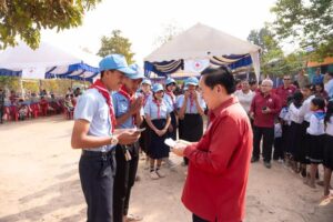 ជាកិច្ចឆ្លើយតប លោកគ្រូ អ្នកគ្រូ សិស្សានុសិស្ស ទាំងអស់បានសម្តែងនូវទឹកចិត្តរំភើបរីករាយឥតឧបមា ដោយបានទទួលនូវសំណង់អនាម័យទឹកស្អាតថ្មី ជាអំណោយសាខាកាកបាទក្រហមកម្ពុជាខេត្ត ហើយសូមប្តេជ្ញាថែរក្សាសមិទ្ធផលនេះឱ្យបានគង់វង្ស យូរអង្វែង តទៅ។