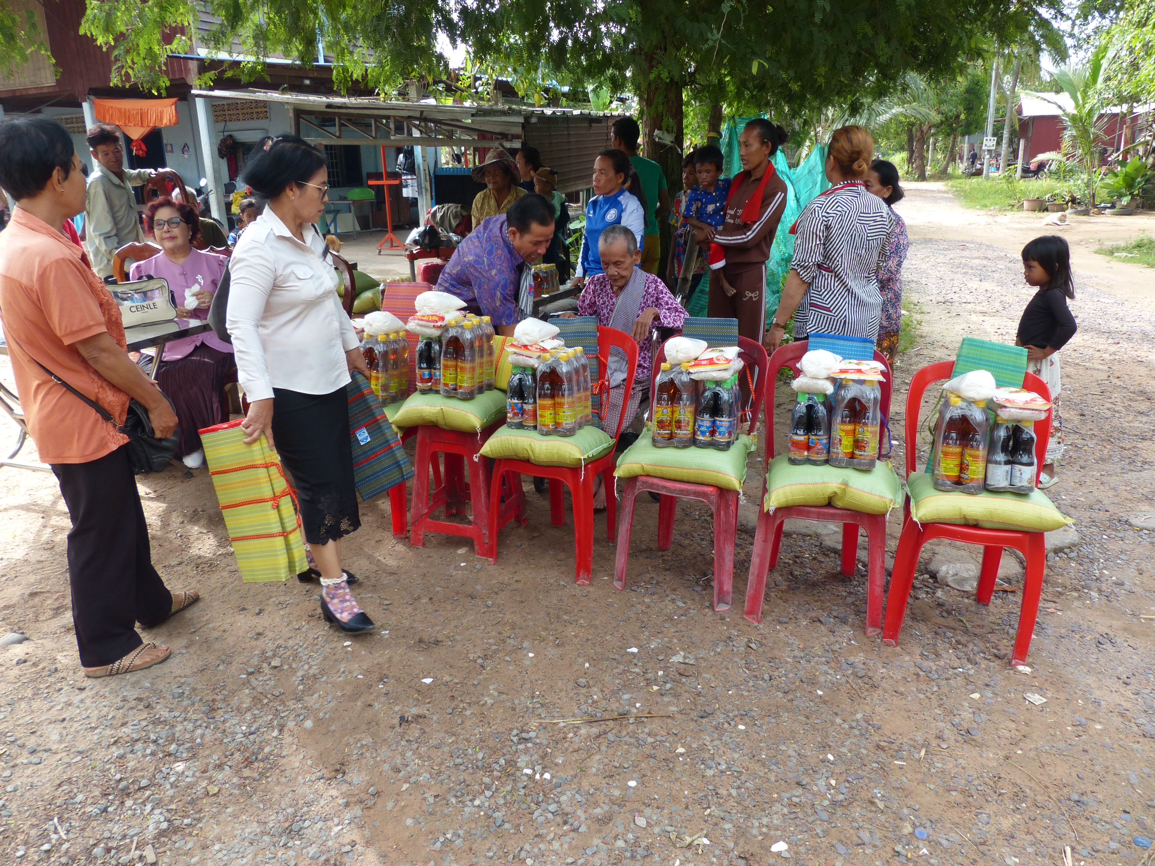 សម្ភារៈដែលបានចែកជូនលោកតាលោកយាយ មានអង្ករ ១០ គីឡូ .កន្ទេល១ . ស្ករសរ១គីឡូ .អំបិល១គីឡូ .ប៊ីចេងកន្លះគីឡូ. និងថវិកា ១ម៉ឺនរៀល ក្នុងនោះក៍បានផ្ដល់ជូនរទះរុញជនពិការមួយគ្រឿងដល់លោកយាយម្នាក់ដែលពិការដើរមិនរួចផងដែរ ។ សូមវត្ថុសាកសិទ្ធិក្នុងលោកតាមថែរក្សាបីប៉ាច់លោកស្រីព្រមទាំងស្វាមីគ្រួសារក្រុមការងារលោកស្រី សូមជួមតែសំណាងល្អសុខភាពល្អជារៀងរហូត ៕